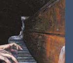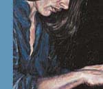 “Absorbed” is a work of art by Jazz Minh Claire Moore, a student at Cornish College of the Arts in Seattle. “I’ve put the viewer of the piece in the exact nook where I used to sit for hours, listening to Stephen play. No background is pictured because, in the music, it didn’t exist–only the music. Stephen prefers to play on the older pianos because, as he says, “They sing. They are unique and hand-crafted and imperfect.” In this painting, I hoped to capture the hypnotic intensity when the world disappears and only the music and the listener are left. The notes have control over me.”