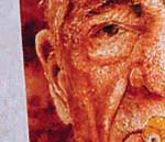 “A Close Variation on Chuck” is a self portrait by James Kirk. James describes this as a take-off on the work of Chuck Close, “a giant in the art world” who has led the revolution in photo-realistic and neo-realistic art. “This is art that shows, perhaps even exaggerates, those personal features that some might characterize as “flaws”the wrinkles, the veins in the eyes, the mottled flesh tones.”